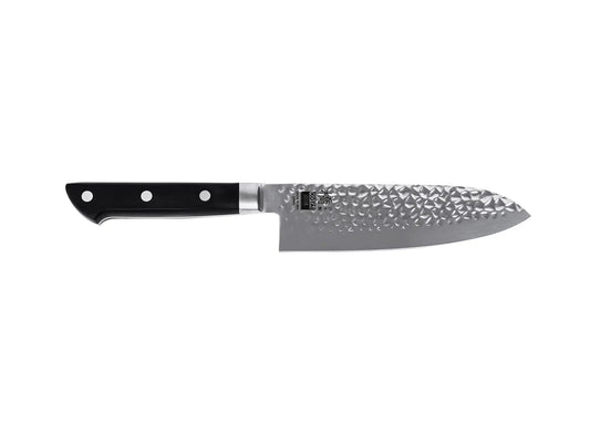 Couteau japonais Santoku lame alvéolée Damas 10Cr 18 cm manche en olivier