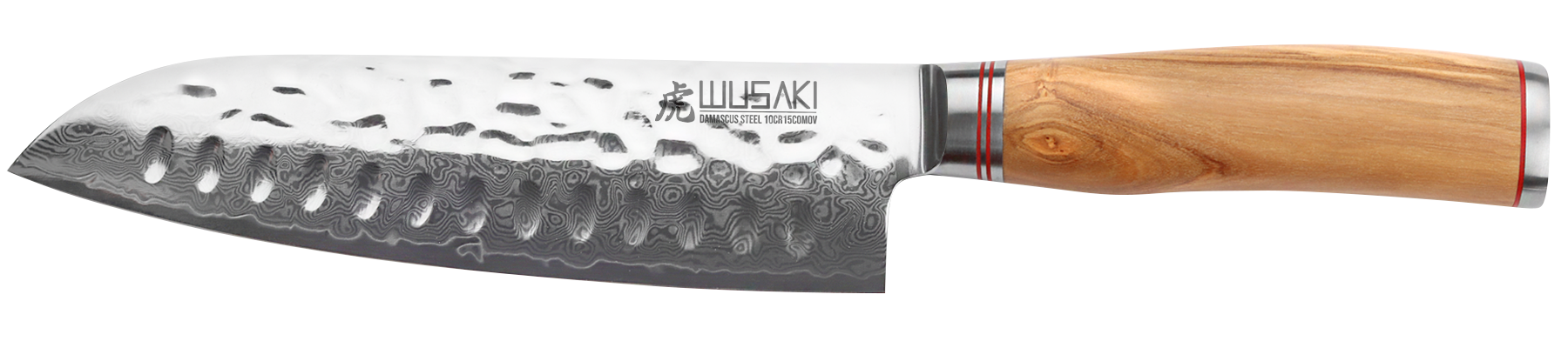 Couteau Santoku 20 cm Wusaki Damas Olive 10Cr – Vitesse, précision et glisse sans effort